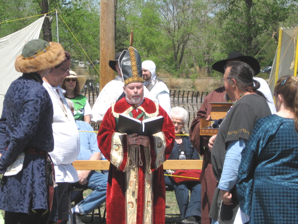 A Renaissance Wedding. In the SCA Dell. It was so neat that the rings were flown in by a hawk from the Royal Gauntlet. The bishop oversaw the ceremony. The Holy Goats were in attendance.