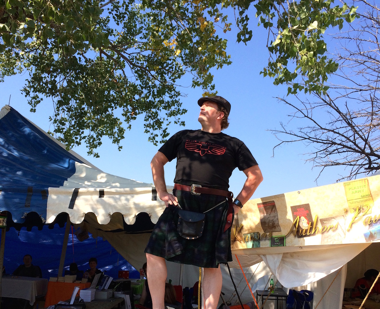 When you’re at the faire, feel free to stop by and say Hi! Â I’ve got my own little space at the faire – look for the Kansas Authors’ Pavilion on the West side of the faire (well, on Saturday, at least. Â Part of Sunday I’ll be competing in the Wichita Highland Games, doing stuff like throwing weights and my favorite, the caber toss!)