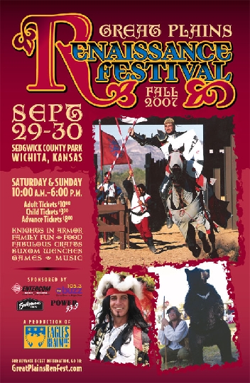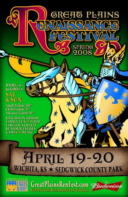 Welcome to the Great Plains Renaissance Festival Poster Archive! Â With two ren fests here in Wichita, Kansas per year, and some ren fests with multiple posters, we start accumulating quite a few styles and designs. Â Check out how we’ve slowly evolved over the years! Â We don’t currently have ALL the posters online, but we have quite a few!
